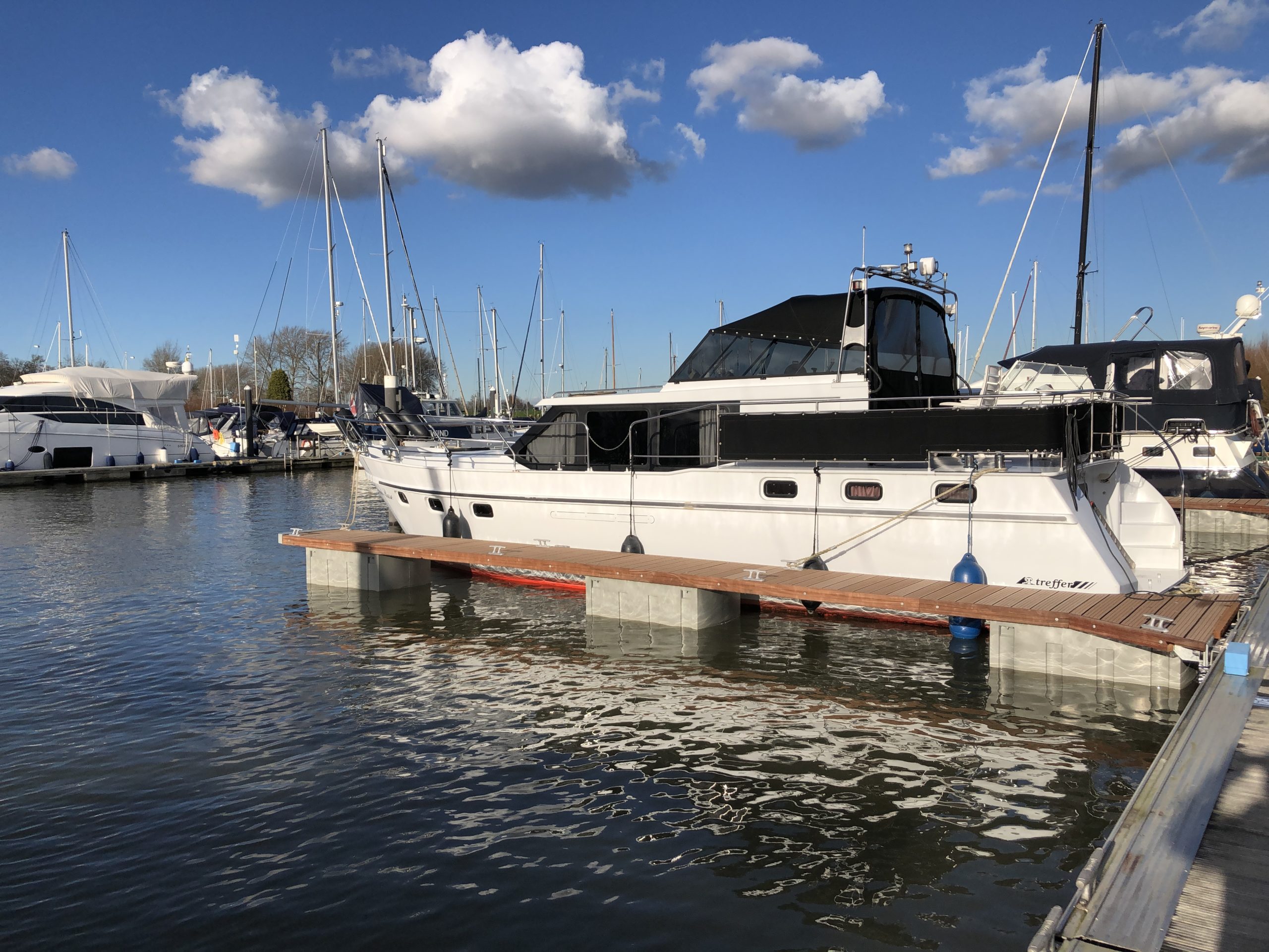 Alle ligplaatsen hebben nu een zijsteiger.